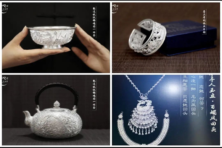 走進(jìn)墨戎鼓鎮(zhèn)的銀匠作坊,時間仿佛凝固。銀匠們?nèi)匝赜弥嫦葌飨碌墓ぞ撸耗径铡U模、牛角鏨和自制的吹管。熔銀時講究"火候如撫嬰",鍛打時追求"千錘顯靈性",鏨刻時注重"一線通神韻"。非遺傳承人大師傅展示著"拉絲"絕活——將銀塊拉成細(xì)如發(fā)絲的銀線,這項(xiàng)技藝需要十年以上的練習(xí)。"拉絲時要心靜如水,手上的力道要像春雨一樣均勻。"他說。這種對工藝極致的追求,使墨戎銀飾呈現(xiàn)出"花中有花,絲中套絲"的精妙效果,連現(xiàn)代機(jī)械都難以復(fù)制。