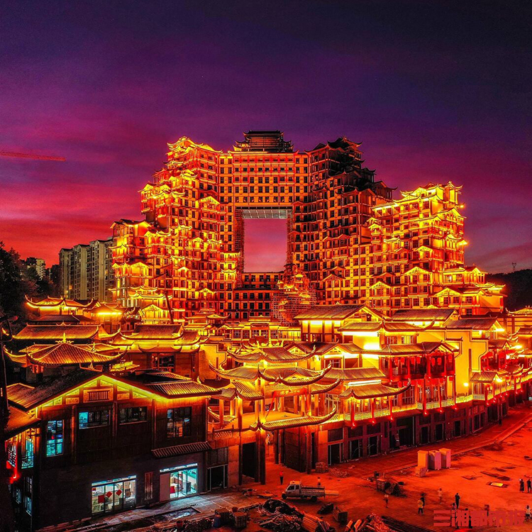它將獨特的土家族建筑奇觀與現(xiàn)代光影科技(如全息投影、互動燈光秀)完美結(jié)合,打造出極具沉浸感的夜間文化體驗場景,并通過引入豐富的地方非遺展示、特色美食集市與沉浸式演藝活動,成功激活區(qū)域夜游經(jīng)濟,為游客提供了傳統(tǒng)與現(xiàn)代交織的全新文旅樣本,引領了沉浸式文化夜游的新風潮。