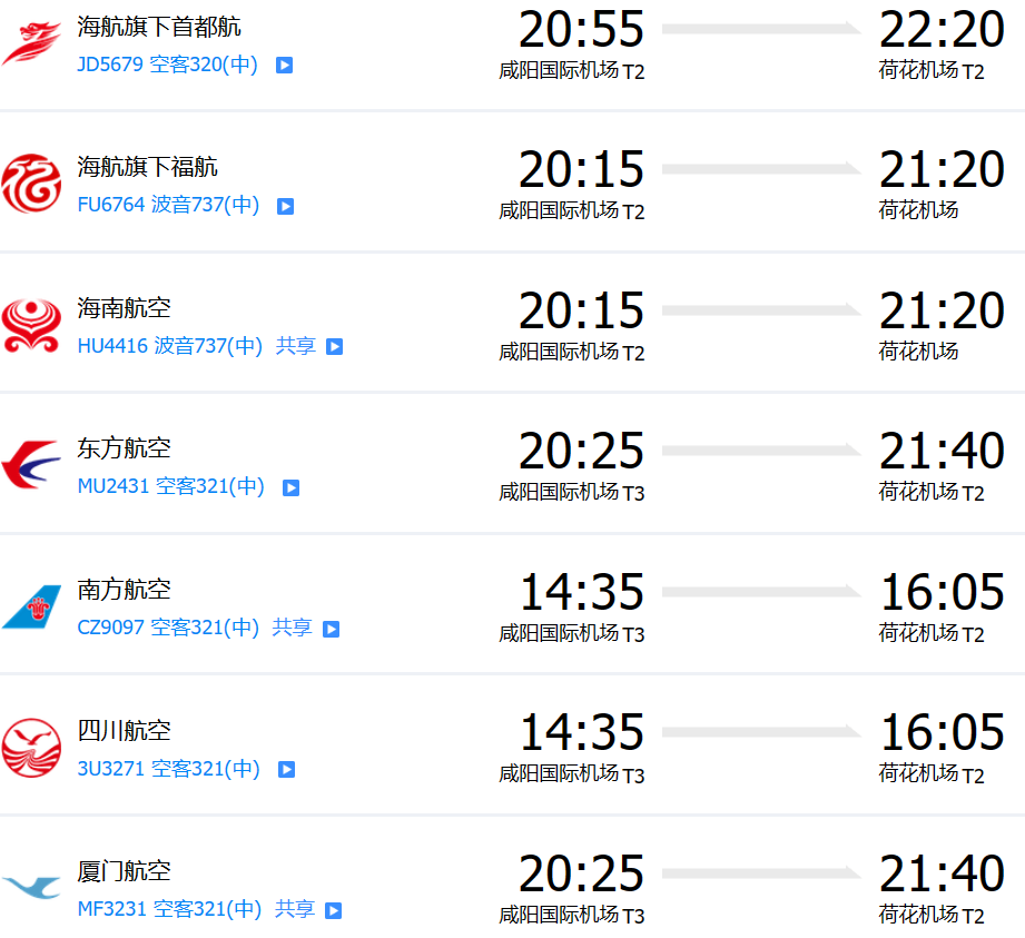 西安咸陽(yáng)國(guó)際機(jī)場(chǎng)有直飛張家界荷花機(jī)場(chǎng)的航班,具體參考如下: