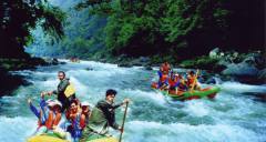 被譽為“中國生態(tài)第一漂”,位于東江湖最南端的黃草鎮(zhèn)境內(nèi),全程26千米。從龍王廟起漂點到燕子排終漂點整個落差75米,急灘108個,漂流河道兩巖有保存比較完好的原始次森林,奇巖怪石林立,古樹遮天蔽日,老藤攀崖附壁,飛鳥跳躍枝頭。東江漂流以其灘多浪急落差大、水碧石怪魚奇怪、兩岸森林植被佳而 聞名,是國內(nèi)目前最具探險的融歷險、探幽、獵奇、拾趣為一體的漂流去處。