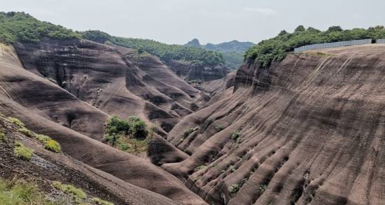 沿江兩巖“丹霞翠遙斷,巖石架空來”。一路順江飄流,只見丹峰林立,紅巖綠水,怪石幽洞,古木吐翠,竹海茫茫。一年四季綠葉、三季花香,繪成罕見的“四面青山列翠屏”、“草木花光盡是春”的奇妙丹霞地貌景觀。
